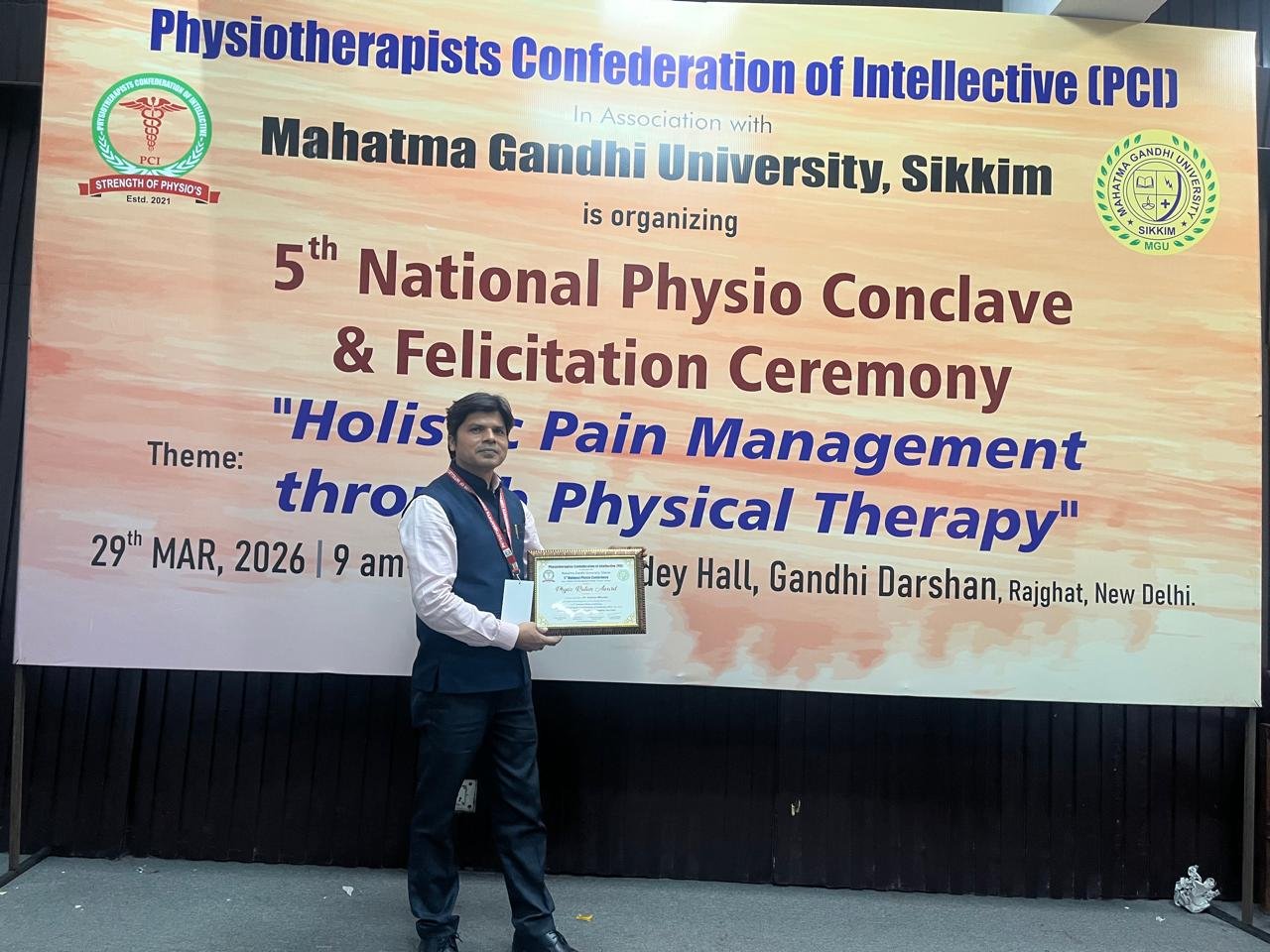 राजघाट, दिल्ली। भौतिक चिकित्सा के पांचवें राष्ट्रीय सम्मेलन में भ्रमरपुर, भागलपुर (बिहार) के लाल डॉ. सत्यम भास्कर को भौतिक चिकित्सा के क्षेत्र में उत्कृष्ट कार्य के लिए “फिजियो रत्न सम्मान” से सम्मानित किया गया।